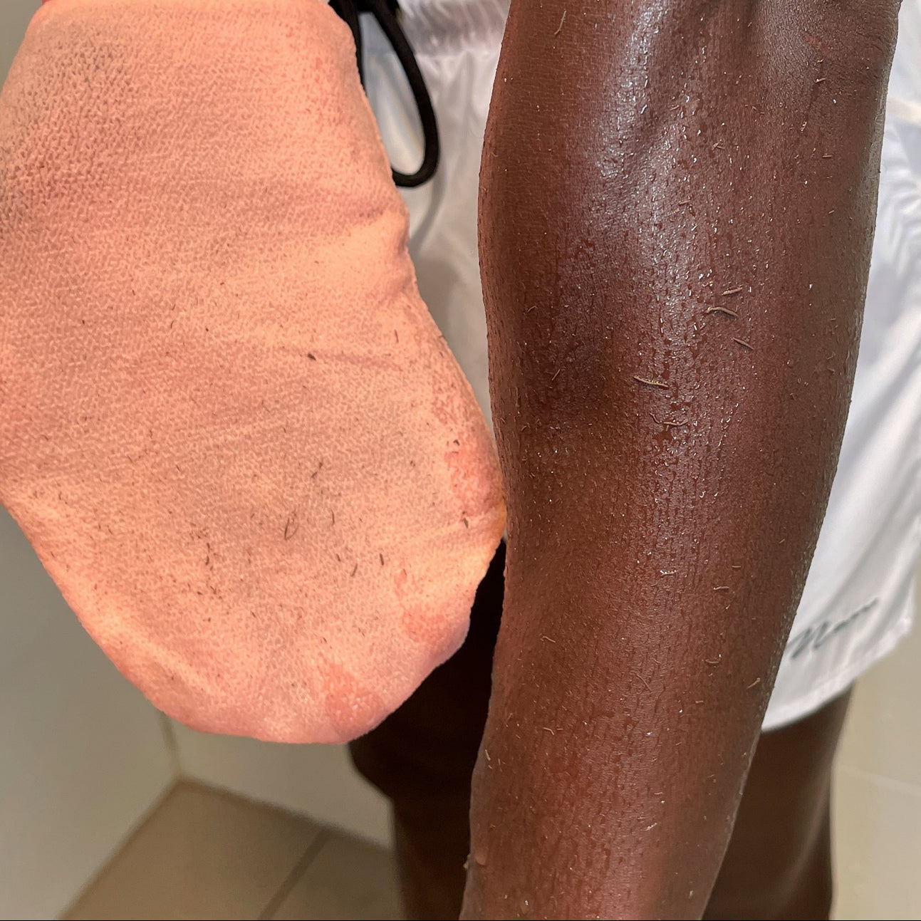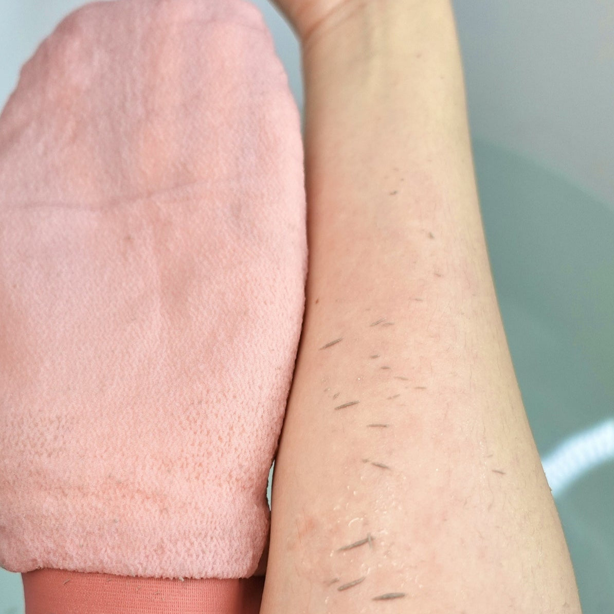 Si après quelques utilisations vous ne voyez toujours pas vos peaux mortes, essayez d’utiliser le gant sur peau sèche. Certaines personnes ont des peaux mortes trop fines pour être visibles lorsqu’elles sont mouillées. Sur peau sèche, elles pourraient se voir davantage.